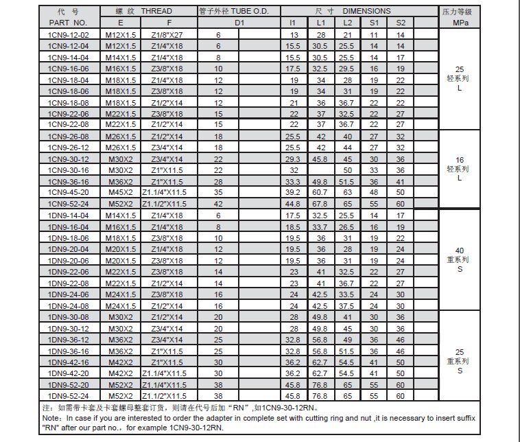 DIN卡套式管接頭1CN9-1DN9