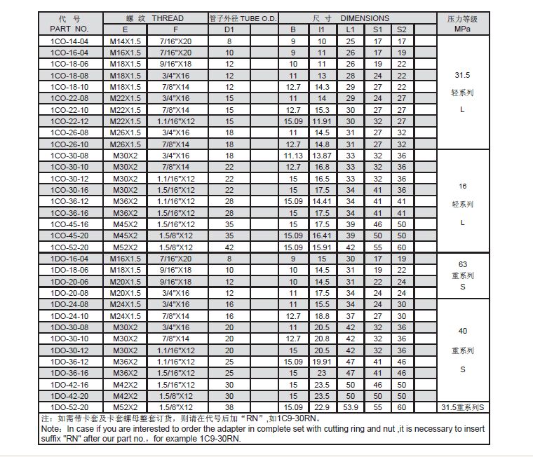 DIN卡套式管接頭1CO-1DO